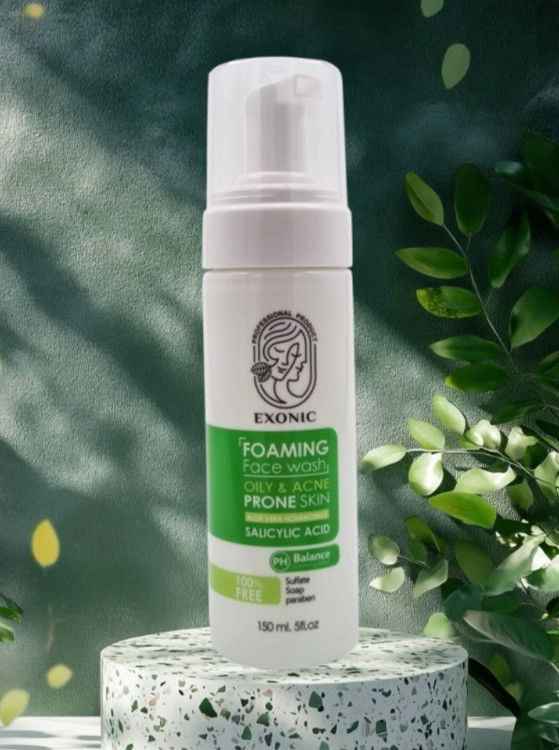 فوم شستشو صورت پوست چرب از برند پرطرفدار اکسونیک exonic با ترکیب ویژه عصاره آلوئه ورا، عصاره بابونه، سالسیلیک اسید و روغن درخت چای، علاوه بر پاکسازی پوست، خاصیت آبرسانی و ضد التهابی دارد.